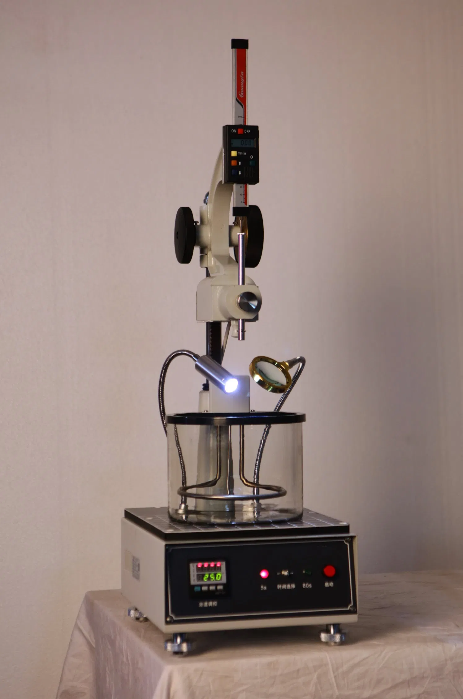 ASTM D1321 Needle Penetrometer for Paraffin WaxApplication:Our needle penetration test equipment is designed and made as per ASTM D1321 standard. It is used to do the penetration test for wax with wax standard needle and constant temperature bath. Features:1. The needle penetration test equipment i......