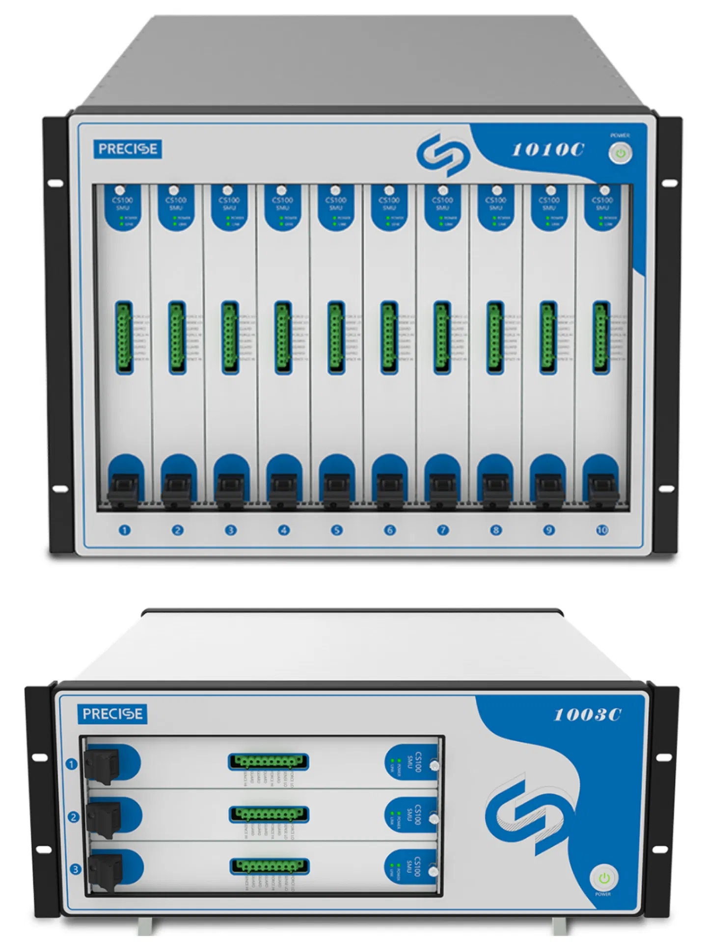In order to meet the different needs of customers for the number of sub-cards, two host machine(1003C and 1010C) have been launched. 1003C can hold up to 3 sub-cards, and 1010C can hold up to 10 sub-cards.We also have developed four sub cards (CS100,CS200,CS300 and CS400) for users to flexibly configure different sub-cards according to their functional and performance requirements to achieve the optimal cost-effective collocation.